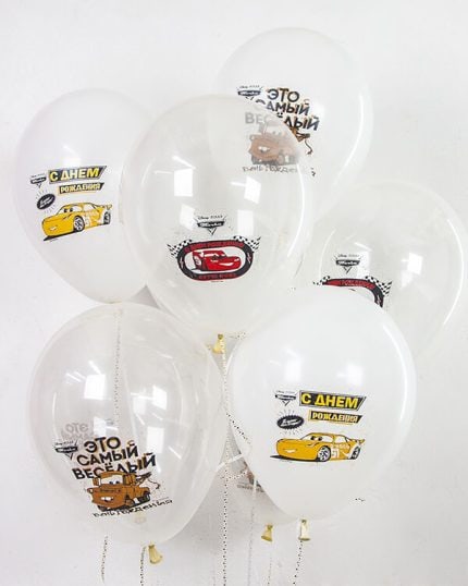 Особенно интересно выглядят композиции из воздушных шаров, созданные в форме машин из Тачек. Можно сделать например гоночный трек, используя шары разных цветов, или создать группу из нескольких шаров, которые вместе образуют машину. Также можно сделать шары в форме номерных знаков, на которых будет написано имя именинника или другая нужная надпись.